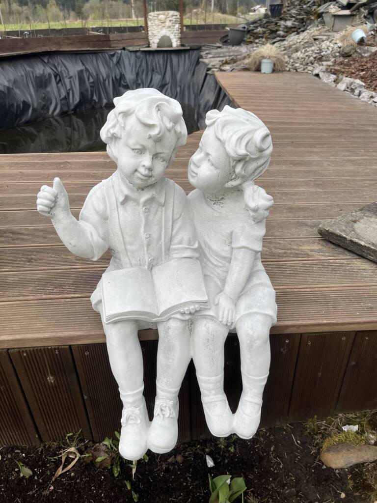 Sjarmerende barnefigur som gir liv og en koselig stemning i hagen. Kan plasseres på kanten av terrassen, på trapper eller andre naturlige steder. Vi tilbyr også en tilpasset benk som passer perfekt til figuren.