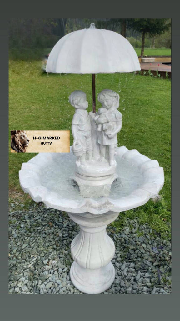 Dekorativ fontene som skaper en rolig og behagelig atmosfære med rennende vann. Håndlaget i Norge av solid betong. Tilpasset nordiske forhold og egnet for norske hager og uteområder.
